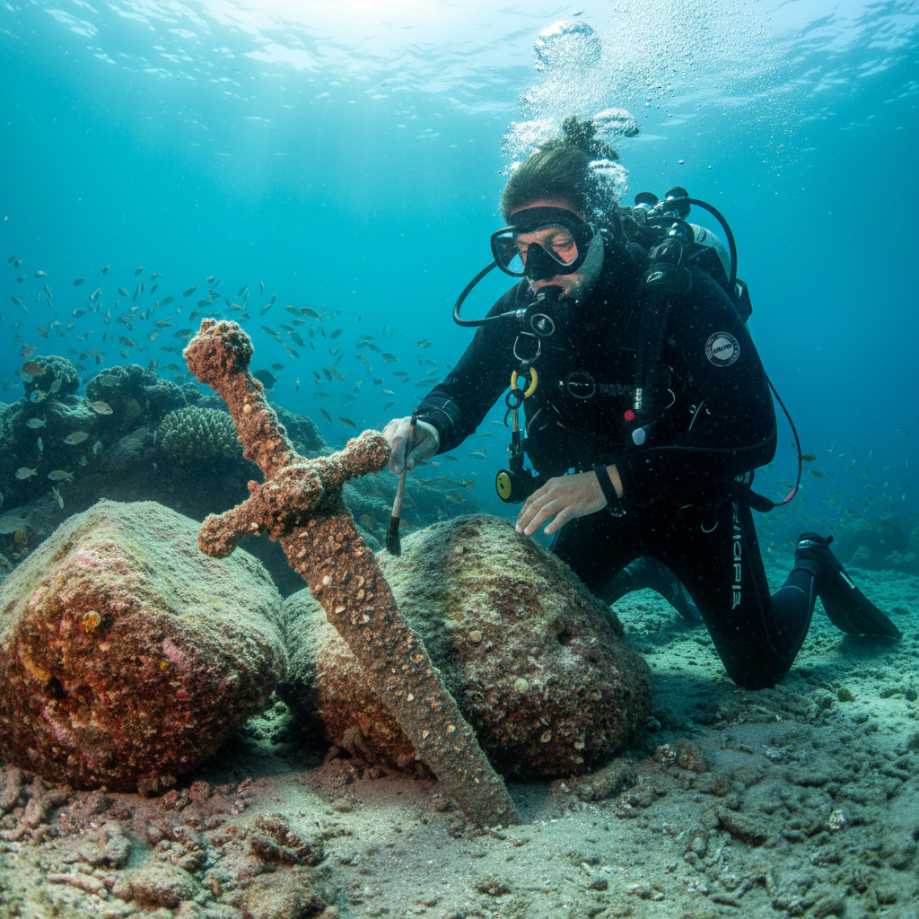 La costa israeliana continua a rivelarsi uno scrigno di tesori medievali. Shlomi Katzin, studente di archeologia marittima presso l’Università di Haifa, ha individuato una spada di epoca crociata durante un’immersione nei pressi di Dor Beach, a sud di Haifa. Il ritrovamento è avvenuto in circostanze quasi romanzesche: Katzin si era immerso dopo aver notato un gruppo di sospetti saccheggiatori dotati di metal detector. Dopo averli allontanati, ha notato l’arma, risalente al XII secolo, che spuntava parzialmente dal sedimento sabbioso.